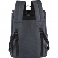 Laptop backpack 15" with lining, small front pocket with zipper, compartment with zipper on the side, regular side pocket, large compartment with magnetic closure with a laptop pocket, buttons on the side allow to close the backpack when it is not completely full, adjustable straps, holder top for hanging on a hanger, includes RPET icon on the tag, inside the zippered pocket at the front there is a ring and a carabiner for fastening keys and protects them against theft, product made from polyester canvas, polyester and PP
