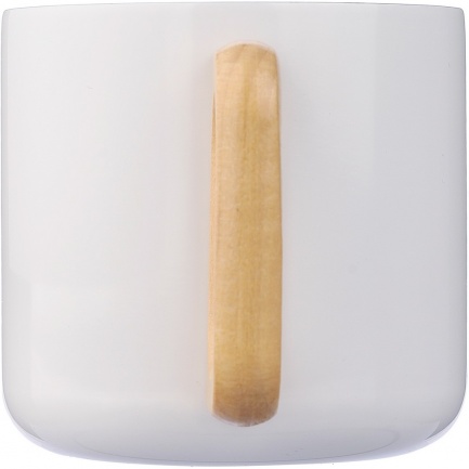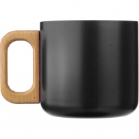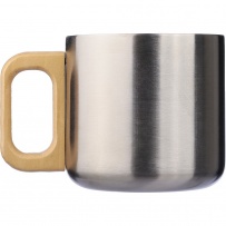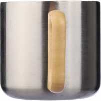 Mug 400 ml features recycled stainless steel double walls with vacuum insulation that slow down the release of temperature to the surroundings, solid wooden handle, includes recycled stainless steel icon on the product, packed in a brown carton box, the product is made of stainless steel