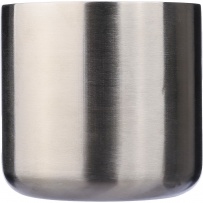 Kubek 400 ml posiada podwójne ścianki ze stali nierdzewnej z recyklingu, które chronią przed poparzeniem, solidny uchwyt z drewna, ikona stali nierdzewnej z recyklingu na produkcie, zapakowany w brązowy kartonik, produkt wykonany ze stali nierdzewnej