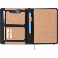Cork conference folder A5, elastic band, pen loop, removable A5 notebook (192 sheets of lined recycled paper, 70 g/m2), product made from cork, paper and polyester
