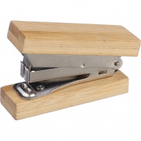 Small-size stapler, includes 50 staples, staples size no. 10, packed in a brown carton box, product made of bamboo and metal
