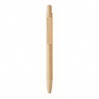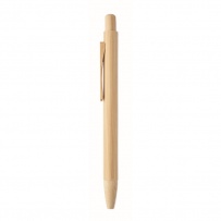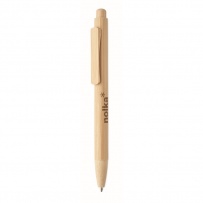 Push button pen with bamboo barrel, tip, clip and body. Blue ink.