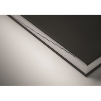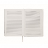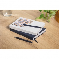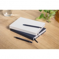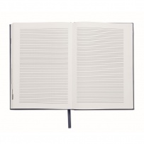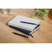 Notatnik A5 z okładką wykonaną w 60% z poliestru pochodzącego z recyklingu i w 40% z PU. 416 uniwersalnych stron z papieru makulaturowego o gramaturze 70 g/m2 (208 arkuszy). Z dopasowanym kolorystycznie znacznikiem strony z taśmy poliestrowej.