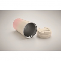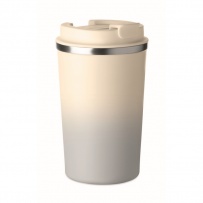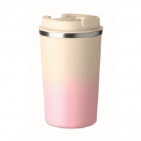 Kubek o podwójnych ściankach z recyklingowanej stali nierdzewnej (90% stali nierdzewnej z recyklingu i 10% stali nierdzewnej) z pokrywką z PP. Pojemność: 350 ml. Nie przecieka.