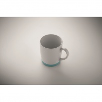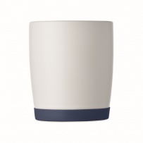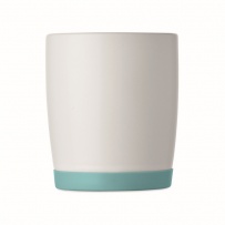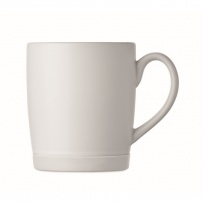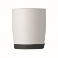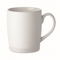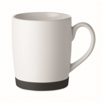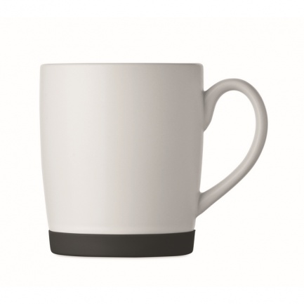 Ceramic mug with white matt finish and silicone base for stability. Capacity 300ml. Individual packing in white carton box.