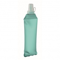 Foldable TPU water bottle with bite valve. Lightweight and portable design, ideal for outdoor use. Leak-free. Capacity 500 ml.