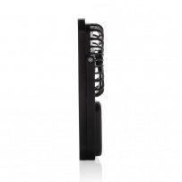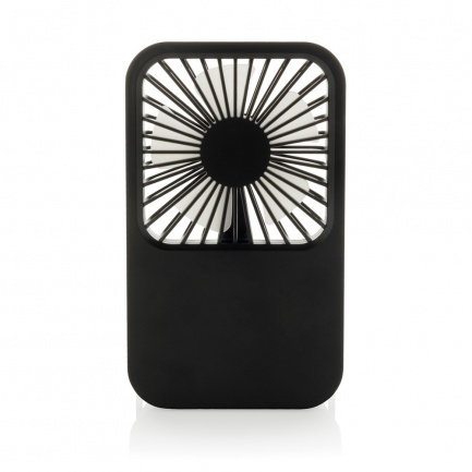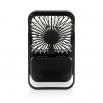 The Aervina desk fan, made from RCS certified recycled plastic, is a sleek and practical way to enjoy a refreshing breeze at home or in the office. Its modern black design combines style with function. The rechargeable 1200 mAh Li-ion battery provides up to 3 hours of working time and recharging in 4 hours via the included 120 cm black TPE USB-A to USB-C cable. With three adjustable speed levels and an adjustable stand, the Aervina fan offers flexible comfort wherever you need it. Made from RCS certified recycled ABS plastic. RCS (Recycled Claim Standard) is a standard to verify the recycled content of a product throughout the whole supply chain. Total recycled content: 58 % based on total item weight. This fan is PVC-free and packaged in an FSC? certified kraft box.Max. power: 5W | Input current: 5V / 400mA.