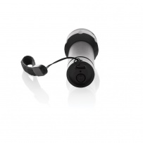 The Flara USB-rechargeable torch is a compact and reliable lighting solution for everyday use. Its matte black body, made from 46% RCS recycled ABS, houses a rechargeable 500 mAh Lithium battery, providing up to 6 hours of operating time and recharging in 1 hour 40 minutes via the included 30 cm black USB-C to USB-C RCS RTPE cable. The torch features a single XPE light with three modes: 100%, 50%, and flashing, producing 80 lumens at 1W. A black polyester carry loop allows for easy portability. The case is made from RCS certified recycled ABS plastic. RCS (Recycled Claim Standard) is a standard to verify the recycled content of a product throughout the whole supply chain. Total recycled content: 46 % based on total item weight. This torch is PVC-free and packaged in an FSC? certified kraft box. | Input current: 5V / 1A.