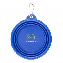 Foldable dog bowl with carabiner, rim in matching color to the main material