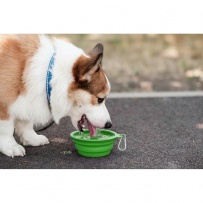 Faltbarer Hundenapf mit Karabiner, Rand farblich an das Hauptmaterial angepasst