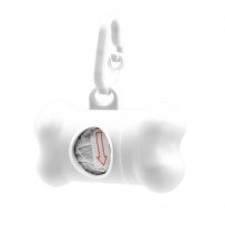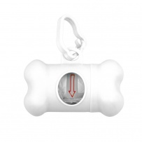 Distributeur de sacs pour chiens avec 20 sacs, mousqueton pour fixation, produit en PP.