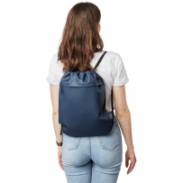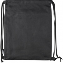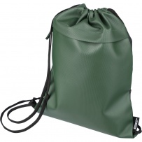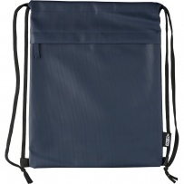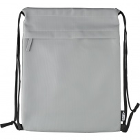 Drawstring bag, zippered pocket on the front, inner pockets in main compartment, capacity: 8 l, load capacity: 8 kg, PU waterproof coating, PU waterproof coating, RPET label on the outside, custom label inside, product made of RPET