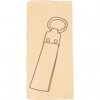 Metal keychain with denim strap for an easier carrying, packaged in craft paper sleeve