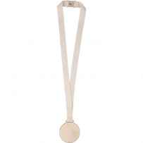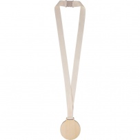Drewniany medal, średnica: 7 cm, grubość: 4 mm, bawełniana smycz 90x2 cm z zapięciem bezpieczeństwa w komplecie