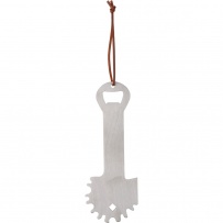 Grill-Schaber aus Edelstahl, integrierter Flaschenöffner, Trageschnur, verpackt in Kraft?Papierhülle.