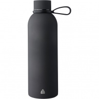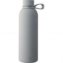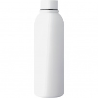 Bouteille isotherme en acier inoxydable 500 ml avec bouchon ? vis en PP, double paroi en acier inoxydable avec vide d?air entre les parois, offrant une isolation thermos et conservant la température longtemps sans la transférer ? l?extérieur, extérieur en acier inoxydable 201, paroi intérieure en acier inoxydable 304, boucle pour un transport facilité, finition caoutchoutée, icône de recyclage sur le produit, emballée dans une boîte en carton brun.
