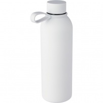 Stainless steel thermo bottle 500 ml with a PP screw cap, double stainless steel walls with a vacuum between them, which provides thermos-like insulation and keeps the temperature for a long time without transferring it to the outside, exterior is made of stainless steel 201, the inner wall is stainless steel 304, loop for an easier carrying, rubberized finish, includes recycling icon on the product, packaged in brown cardboard box