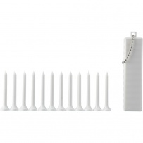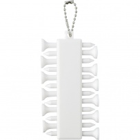 Set of 12 golf tees in compact holder, cord for an easier carrying, 3 markers on the backside, includes ABS icon on product, product made of ABS