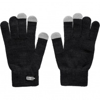 Gants avec 3 bouts de doigts spéciaux pour appareils ? écran tactile, étiquette RPET ? l?extérieur, étiquette de lavage ? l?intérieur, produit fabriqué en RPET et élasthanne.