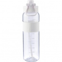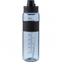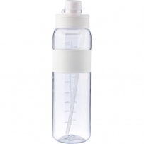 Butelka sportowa 900 ml z tritanu, ustnik i odkręcane wieczko, silikonowy pierścień, uchwyt ułatwiający noszenie, miarka z boku, zapakowana w kartonową wytłoczkę