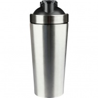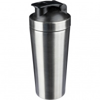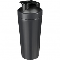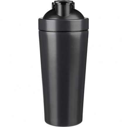 Sportflasche 750 ml, einwandig, Edelstahl 304, Shaker mit Schraubdeckel, Metallkugel zum besseren Mischen der Zutaten, Recyclingsymbol auf dem Produkt, verpackt in Kraftkarton.