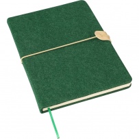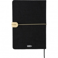 Carnet format environ A5, 80 pages lignées (70 g/m?), avec sangle de fermeture externe pour un transport facilité, couverture souple, ruban marque-page pour faciliter le repérage de la derni?re page ou des notes importantes, icône de recyclage présente sur le produit, fabriqué en RPET et PU.