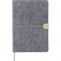Notatnik ok. A5, 80 kartek w linie (70 g/m?) z zewnętrznym paskiem zamykającym, miękka okładka tasiemka zakładkowa umożliwia wygodne zaznaczanie ostatniej strony lub ważniejszych notatek, ikona recyklingu na produkcie, produkt wykonany z RPET i PU