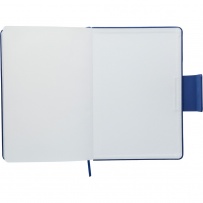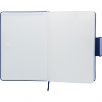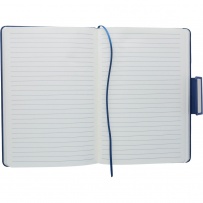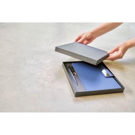 Zestaw upominkowy w ozdobnym pudełku: notatnik, 80 kartek w linie (70 g/m?), magnetyczne zapicie, tasiemka zakładkowa umożliwia wygodne zaznaczanie ostatniej strony lub ważniejszych notatek, długopis w niebieskim kolorze, ikona recyklingu na wszystkich produktach, produkt wykonany z kartonu, PU i poliestru