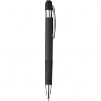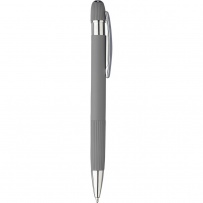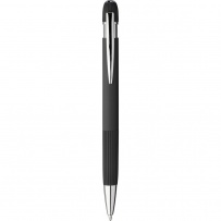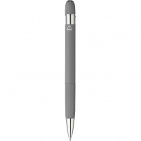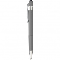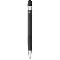 Approx. A5 notebook 100 lined pages (70 g/m?) with corduroy-look hardcover, bookmark ribbon for easy marking of the last page or important notes, ball pen included, rubberized finish, striped details on the grip and topside, chromed plastic tip, includes recycling icon on both items, packaged in brown cardboard box, product made of PU and metal