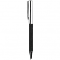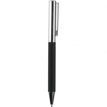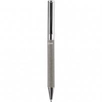 Ballpen, twist-action ball pen made of metal and RPET, writes in blue, includes RPET icon on a product, packaged in brown cardboard box