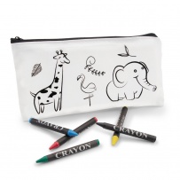 Pencil case designed for colouring, comes with 5 wax crayons in different colors, product made of non-woven