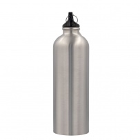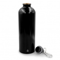 Sportflasche 750 ml mit Karabinerhaken zum Befestigen, nur für kaltes Wasser geeignet, glänzende Oberfläche, Produkt aus recyceltem Edelstahl