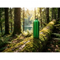 Bouteille de sport 750 ml avec mousqueton, convient uniquement pour l'eau froide, finition brillante, produit en acier inoxydable recyclé