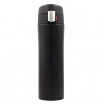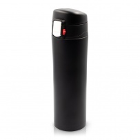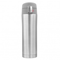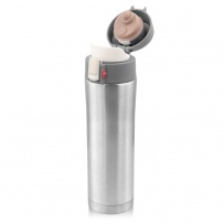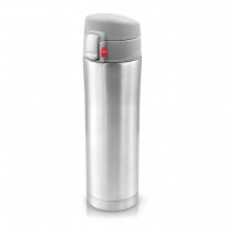 Kubek termiczny 450 ml z podwójnymi ściankami ze stali nierdzewnej z izolacją próżniową spowalniającą oddawanie temperatury na zewnątrz i zachowującą właściwości termosu, wyposażony w płaskie wieczko typu lock z wygodnym mechanizmem otwierania jedną ręką, szczelna konstrukcja leakproof