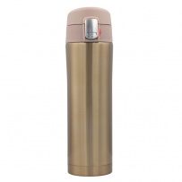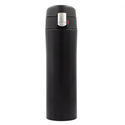 Thermo mug 450 ml with double-walled stainless steel and vacuum insulation that slows heat transfer and retains thermal properties, equipped with a flat lock-type lid with a convenient one-hand opening mechanism, leakproof design