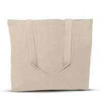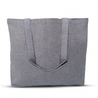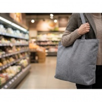 Sac shopping Fairtrade B?RIGHT en coloris chinés, avec fond large et résistant, longues anses (longueur 70 cm, largeur 3 cm) pour le porter ? l?épaule, possibilité d?imprimer un grand logo visible de loin, fabriqué en 50% coton non traité et 50% polyester recyclé, grammage 300 g/m?