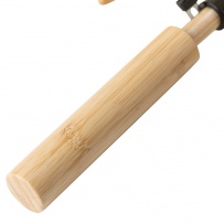 Automatic umbrella with a diameter of 23 inches, opened automatically, 8 panels, wooden shaft and bamboo handle, fastened with hook and loop, includes RPET icon on the label, product made of 190T RPET polyester fabric