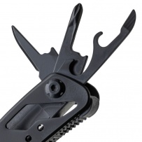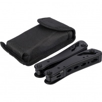 Multifunctional tool with 13 functions, pliers, wire cutter, knife, small screwdriver, medium flat screwdriver, large flat screwdriver, loop bar, file, saw, opener, screwdriver, can opener, wire stripper, packed individually in brown carton box, product made from aluminium and stainless steel