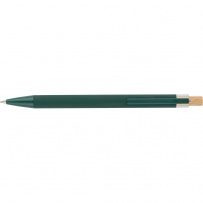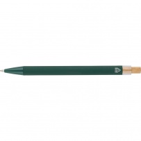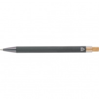 Długopis, bambusowy przycisk, metalowy klips, wkład w niebieskim kolorze, ikona recyklingu na produkcie, wystarcza na ok. 800 m pisania, produkt wykonany z ABS z recyklingu, aluminium i bambusa