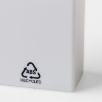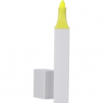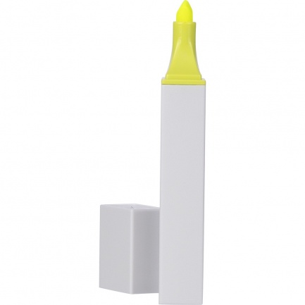 Highlighter, white body, coloured detail, includes ABS icon on product, product made from recycled ABS