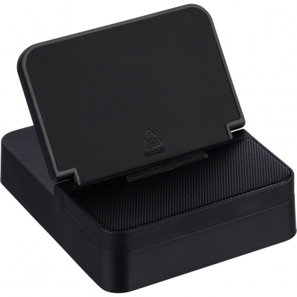 Ładowarka bezprzewodowa 15W, stojak do telefonu, głośnik 5W, bateria 1200 mAh, BT 5.4, wejście 5V/500mA, zapakowany pojedynczo w brązowy kartonik, produkt wykonany z ABS z recyklingu, metalu i PU