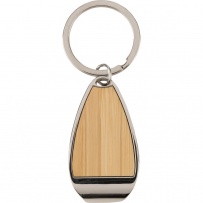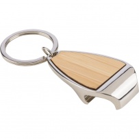 Keyring, bottle opener, packed in paper bag, product made of bamboo and metal