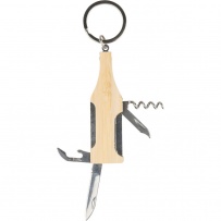 Schlüsselanhänger, Flaschenöffner, verpackt in einem Karton, Produkt aus Metall und Bambus