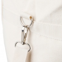 Torba termoizolacyjna 330 g/m? o pojemności 23 l, dwa uchwyty do noszenia (3,5 x 60 cm), posiada regulowany uchwyt umożliwiający noszenie na ramieniu (2,5 x 110 cm), metalowa klamra, wnętrze wyłożone folią aluminiową, ikona RPET na metce, produkt wykonany z polibawełny z recyklingu, folii aluminiowej i RPET