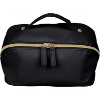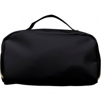 Kosmetyczka zapinana na zamek, krótki uchwyt do noszenia, podszewka z poliestru 210D w środku, duża kieszeń zapinana na zamek, w środku mała kieszeń zapinana na zamek ikona recyklingu na metce, produkt wykonany z PU z recyklingu i poliestru