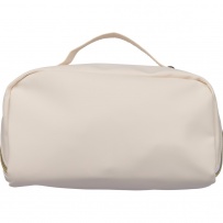 Trousse de toilette zippée, petite poignée de transport, doublure intérieure en polyester 210D, grande poche zippée, petite poche intérieure zippée, icône de recyclage sur l?étiquette, produit fabriqué en PU recyclé et polyester