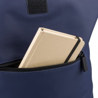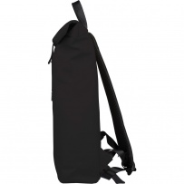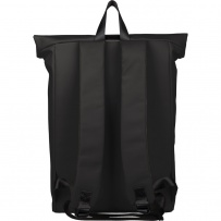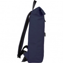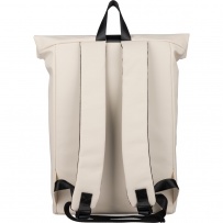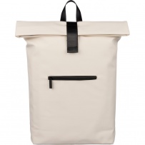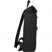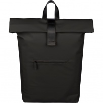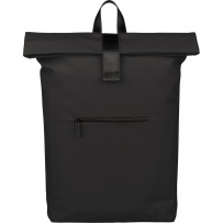 Rolltop backpack with capacity of 19 litres, small, zippered pocket at the front, rolltop main compartment with hook and loop closing, laptop 16" compartment inside, adjustable ventilated shoulder straps, top handle for easier carrying, 210D polyester lining, includes recycled icon, product made from recycled PU and polyester