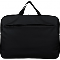 Laptop bag 15", 210D polyester lining, 4 mm padding, hook and loop closed back pocket, zippered main compartment, 2 short carrying handles, adjustable shoulder strap, includes recycled icon on tag, product made from recycled PU and polyester