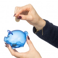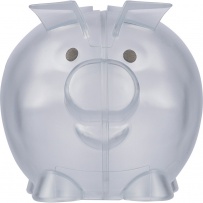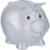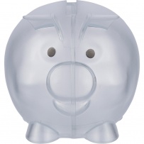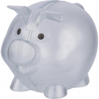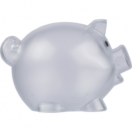 Piggy bank, includes recycled icon on product, packed in polybag, product made of recycled plastic