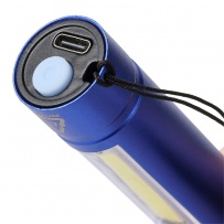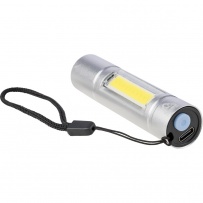 COB Flashlight, 3 light modes, 80-100 lumen, wrist cord, includes recycled icon on the product, rechargeable function, USB-C port, 300 mAh battery, 30 cm black cable included, product made of recycled aluminium and polyester